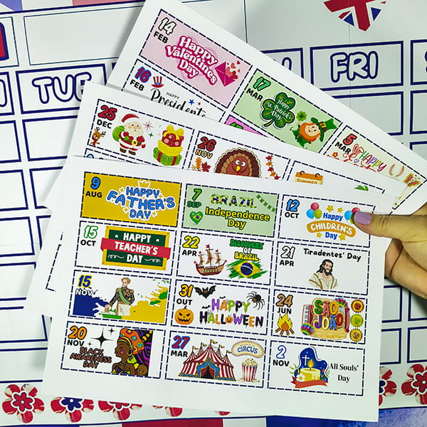 😃 Cartões com diversas datas comemorativas para aplicar nos dias correspondentes.
