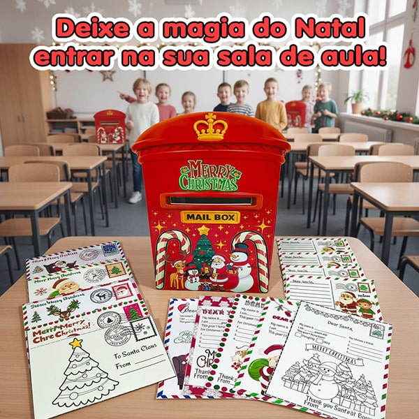 🎅 Com o Christmas Mailbox do Papai Noel, as crianças escrevem suas cartinhas, montam os envelopes e colocam tudo na caixinha do Papai Noel.