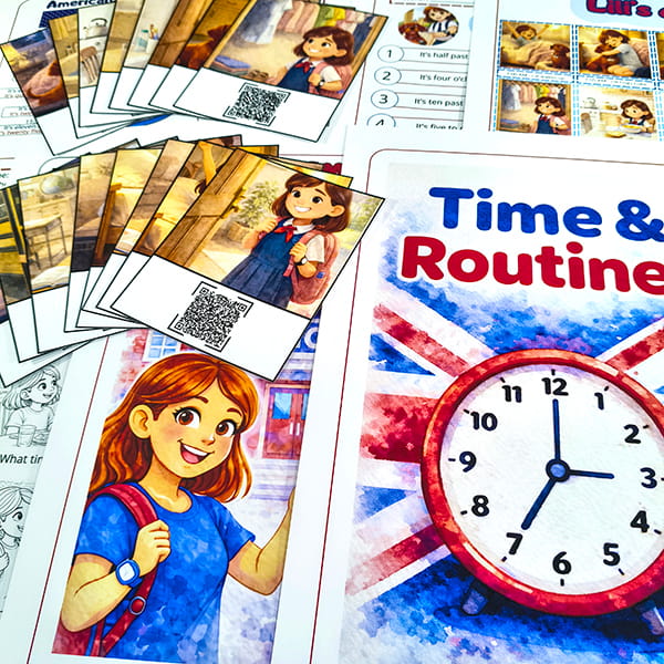 📘 Este material foi desenvolvido para trabalhar telling the time + daily routine de forma visual, contextualizada e progressiva, ajudando o aluno a compreender, ler e usar o inglês na prática.